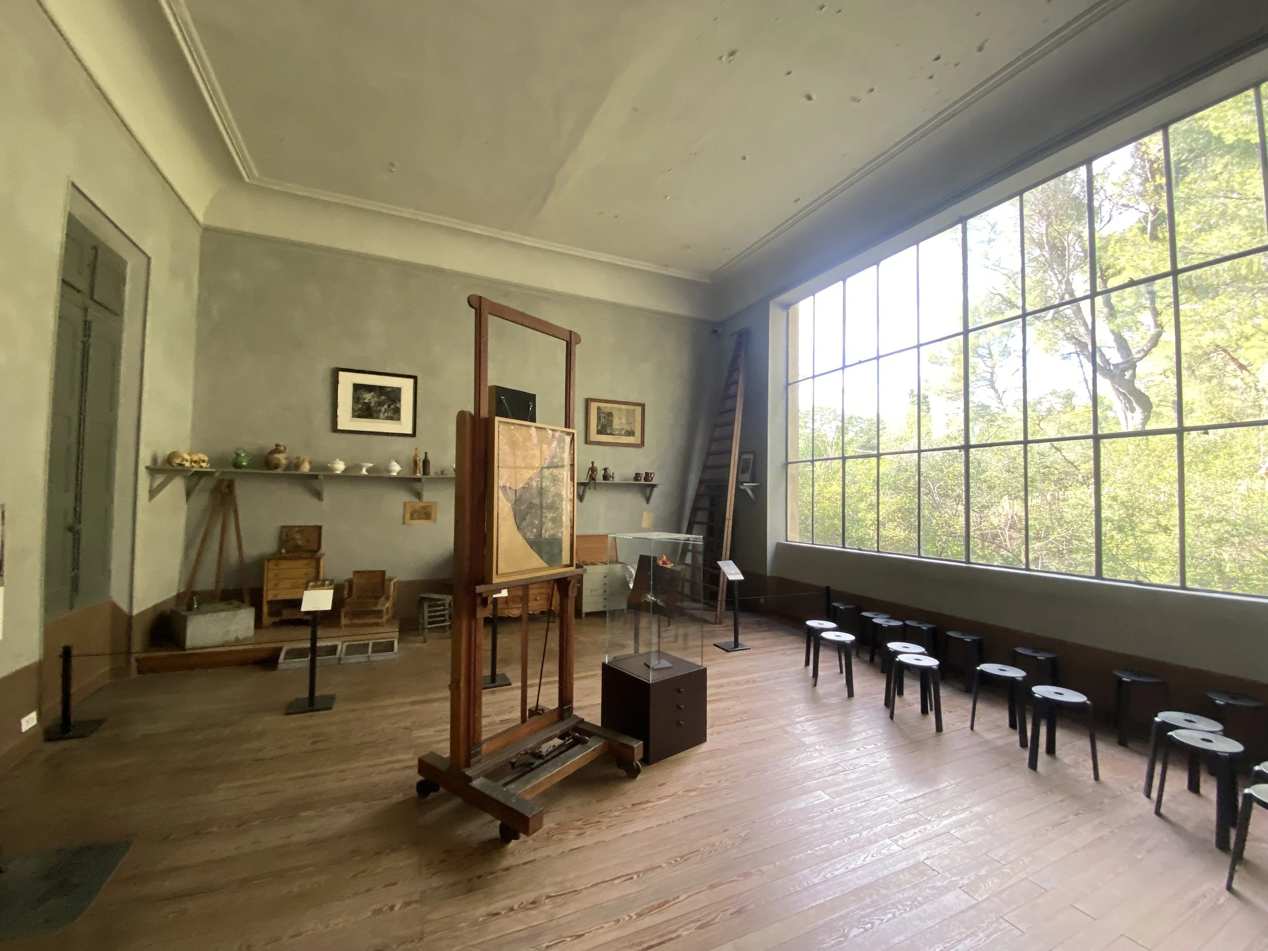 Le point de vue du guide-conférencier : Quelle belle mise en valeur des objets personnels du peintre, dans cet atelier où il a peint ses derniers chefs-d’œuvre, aujourd’hui dispersés dans le monde entier ! Être dans l’intimité du maître un siècle plus tard, tant d’émotions !