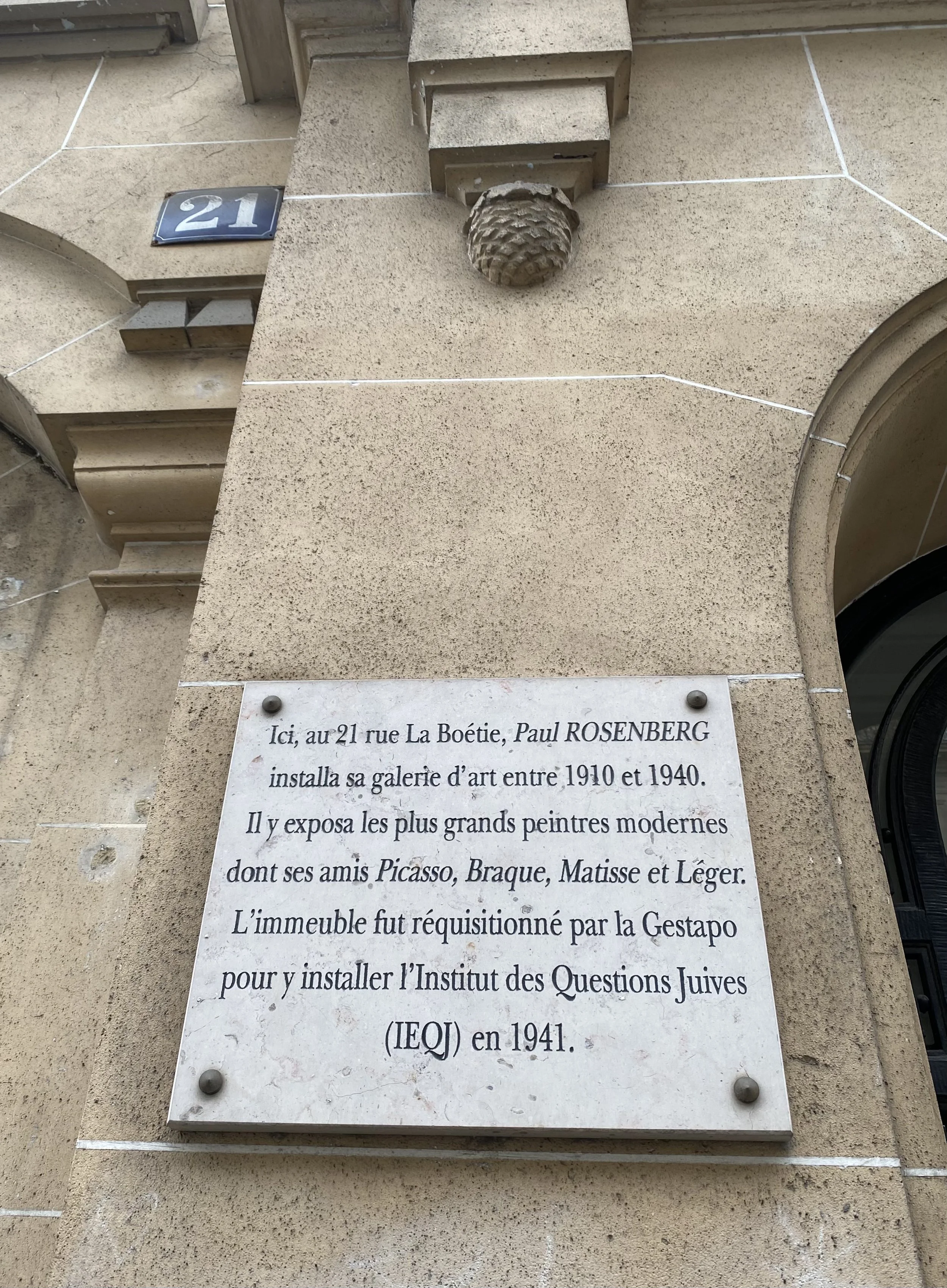 La galerie d’art de Paul Rosenberg se trouvait 21, rue La Boétie… photo prise en allant au Musée Jaquemart-André en août 2025.