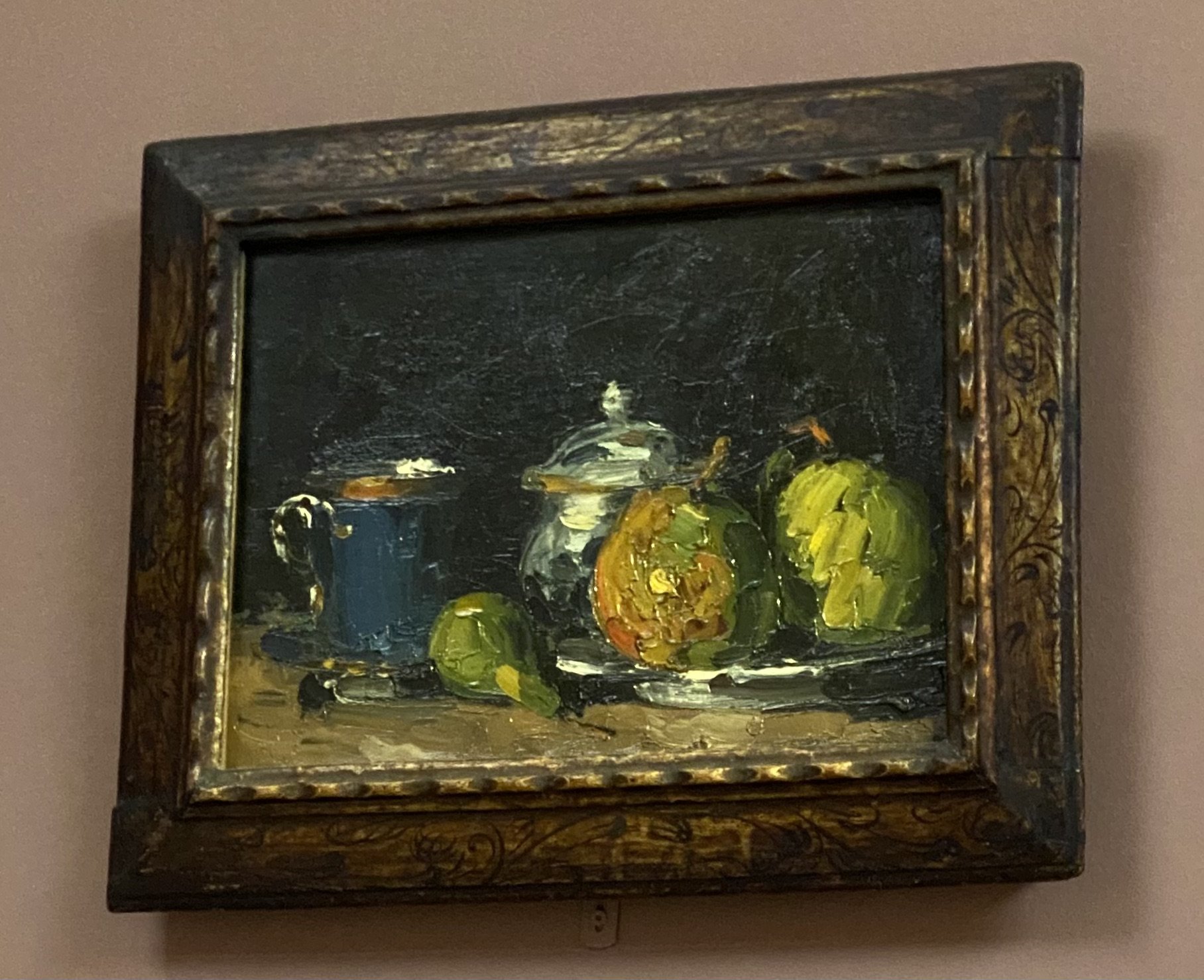 La nature morte de Paul Cezanne représentée derrière son père dans le tableau précédent…