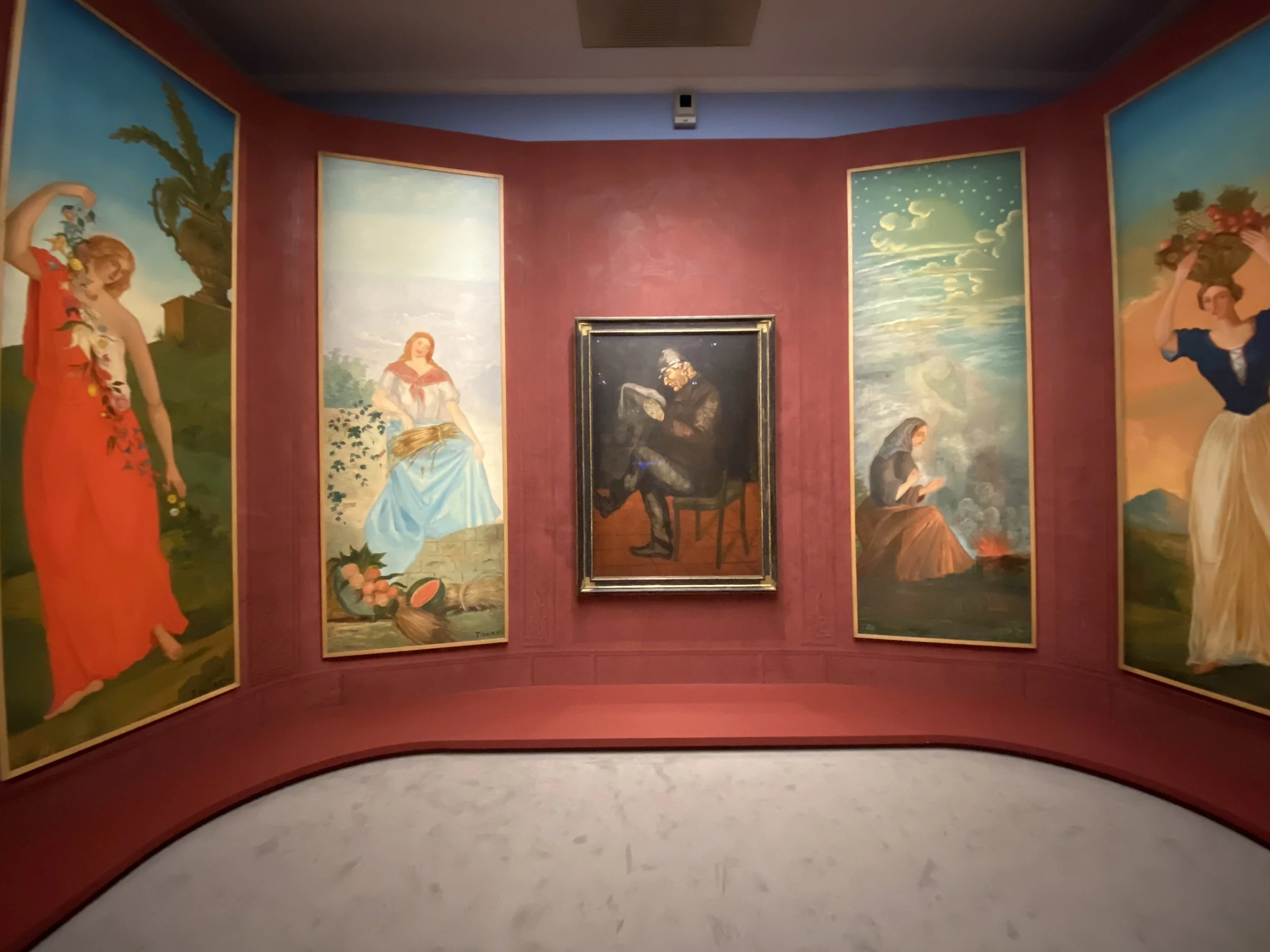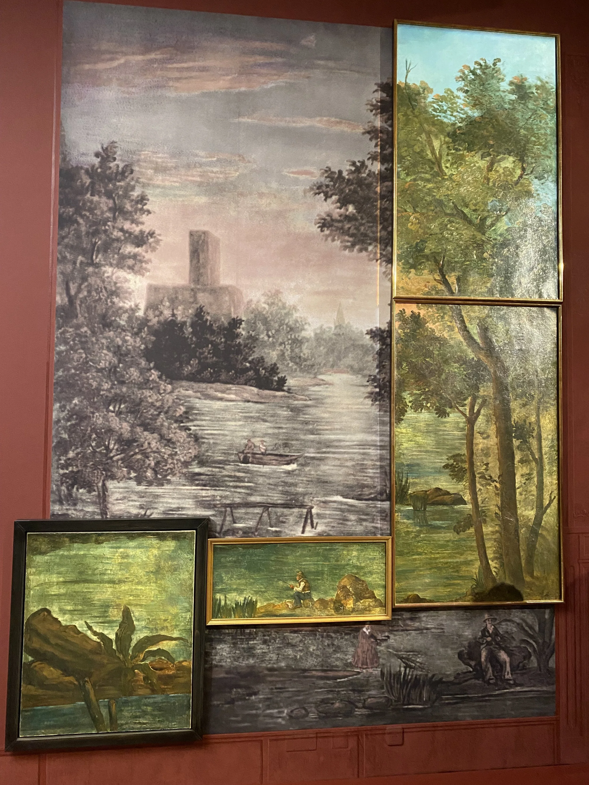 Les panneaux décoratifs et tableaux du grand salon de la maison de famille sont reconstitués pour la première fois : un travail de longue haleine et un certain acharnement des organisateurs a permis de faire venir ces œuvres de la jeunesse du peintre de plusieurs pays comme le Japon et les USA, un véritable exploit.