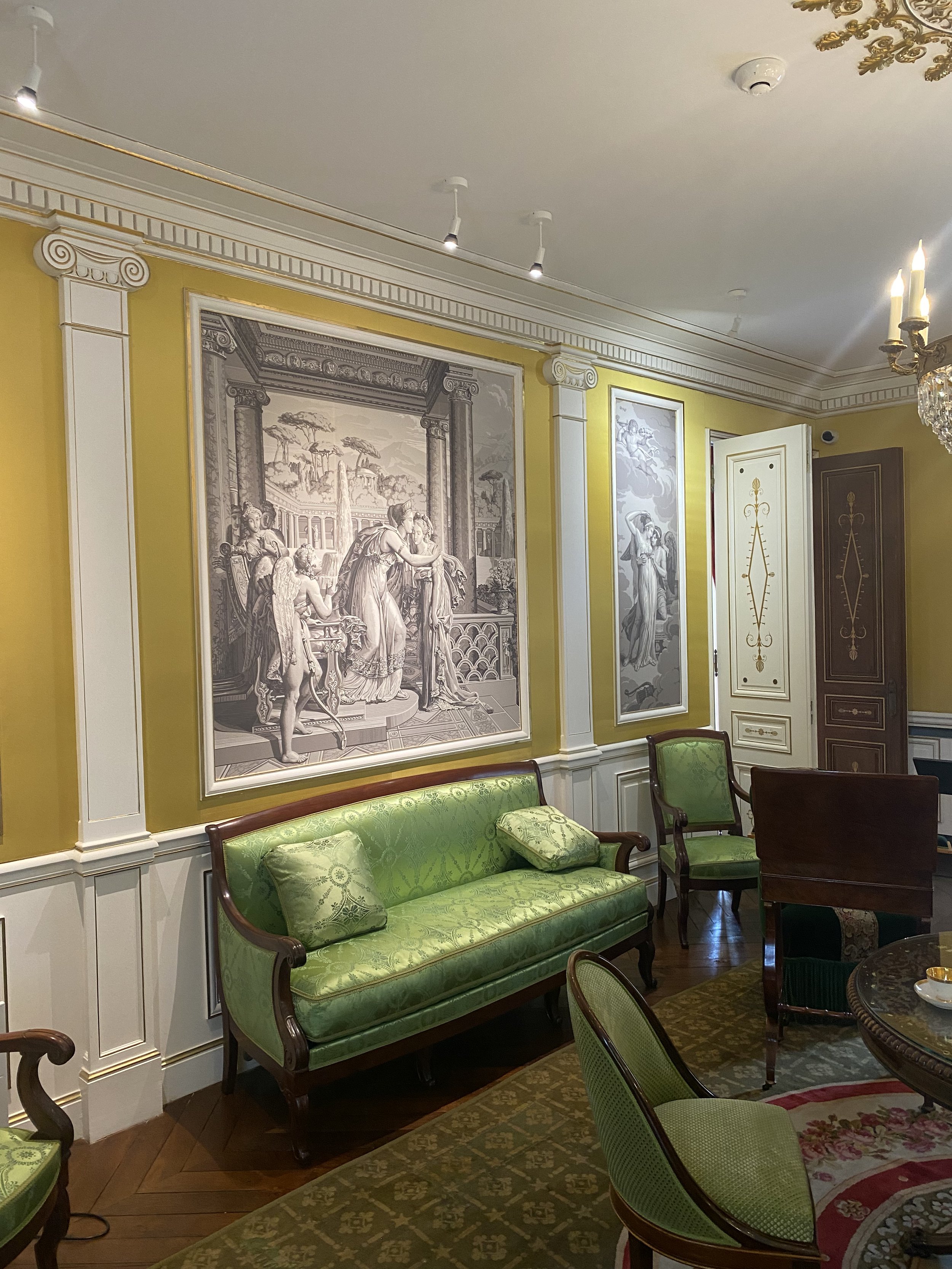 Dans le salon de musique, c’est le portrait de la cousine Zoé (1877) qui a permis de reconstituer le décor.