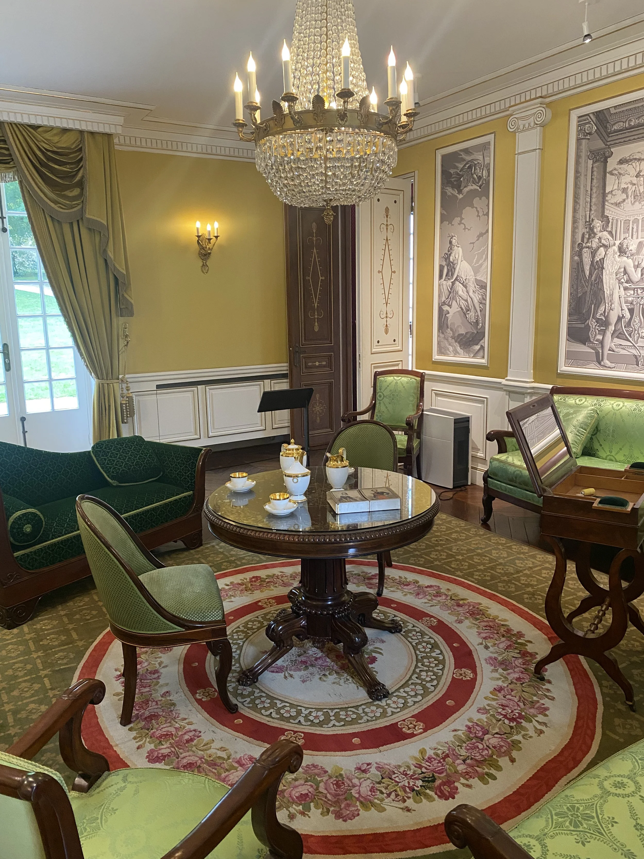 Ici le salon, où les dames, après les repas, se retrouvaient pour le thé ou la broderie…