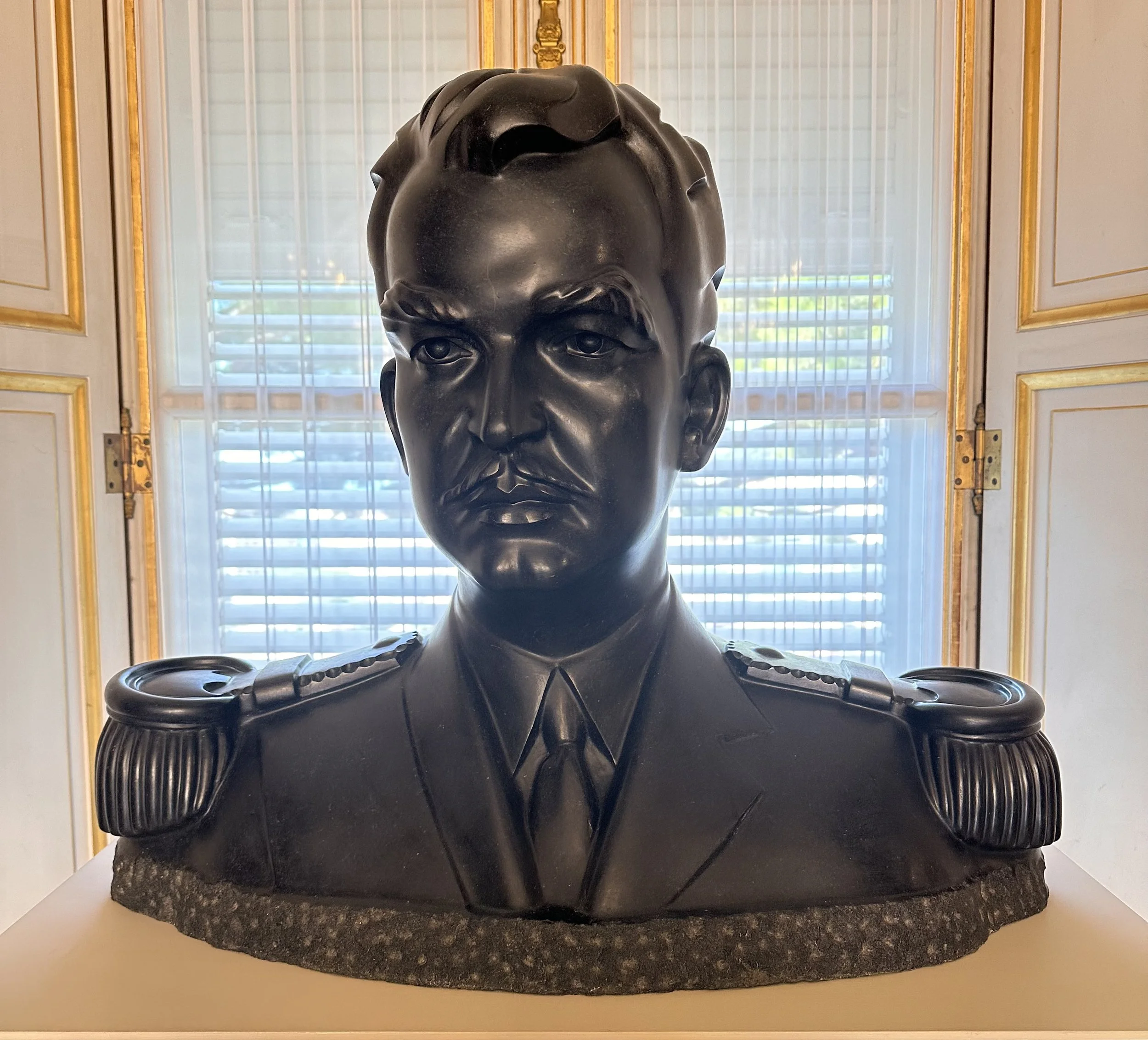 On y trouve des bustes remarquables, présidés par le Prince Rainier III (ci-dessus), disposés dans un face à face princier : parmi les bustes en plein dialogue…