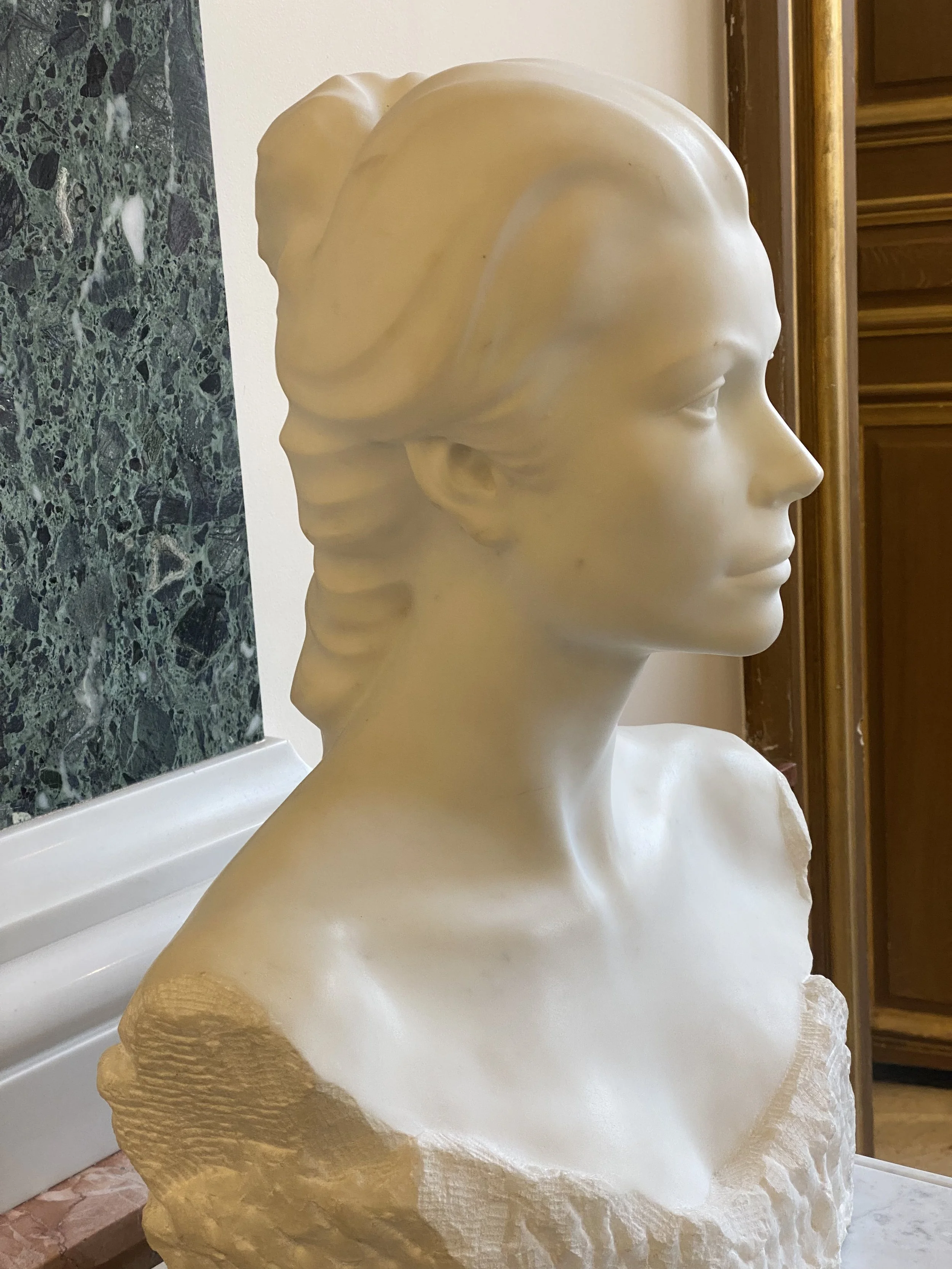 Le buste de la Princesse Grace, plus récent (1997), est l’œuvre de Cyril de la Patellière, auteur de la sculpture de sainte Dévote, devant l’église du même nom.