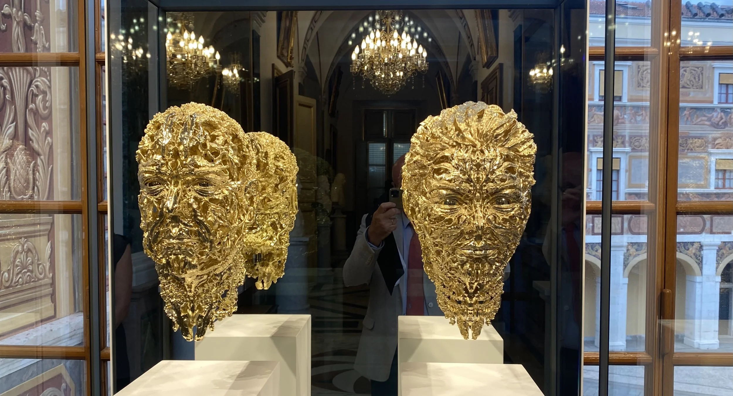 Dans un style plus contemporain, le Prince Albert II et la Princesse Charlène, par Barry X Ball, un artiste américain originaire de Pasadena en Californie, qui travaille à New York et expose dans le monde entier. La tête du Prince Albert II, en or 18 carats, tantôt mat, tantôt brillant, est composée de diverses variétés de la flore marine, et sur l’arrière, des armoiries monégasques et de son monogramme. Elle a été réalisée en collaboration avec la célèbre maison d’orfèvrerie italienne Damiani, créée en 1924 à Valenza (Piémont). Une oeuvre d’art complexe, qui attire immédiatement le regard, et qui rend hommage à l’amour du prince pour les océans et à son engagement dans la protection de l’environnement. La tête de la Princesse Charlène, quant à elle, a été réalisée quelques années plus tard, également en or.