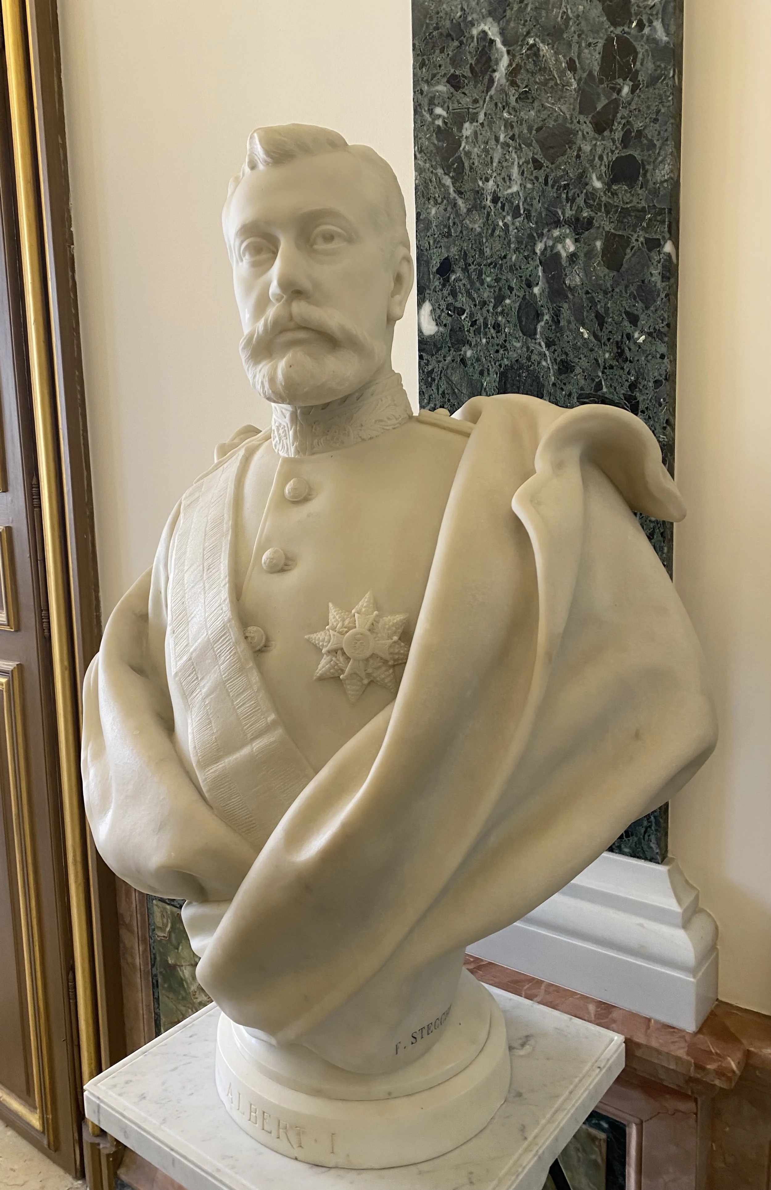Le Prince Albert Ier, trisaïeul du Prince Albert II, par le sculpteur français d’origine italienne Fabio Stecchi (1892), par ailleurs auteur d’un buste de Gustave Eiffel conservé au Musée d’Orsay à Paris. Il a également signé, sur la façade du Casino de Monte-Carlo, les deux statues allégoriques de la Seine et la Méditerranée.