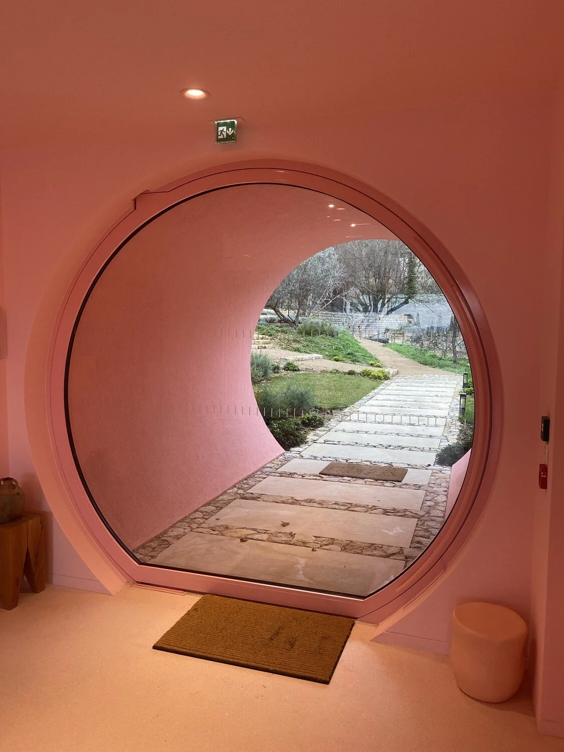 C’est le cabinet d’architecture NeM qui a restauré la maison pour en faire cette extraordinaire villa rose, dont la couleur a nécessité plusieurs mois d’études, des tuiles vernissées aux interrupteurs. Lucie Niney et Thibault Marca (NeM) ont aussi travaillé à la Bourse du Commerce de F. Pinault (Paris). Pour sa conception et les matériaux utilisés, la maison a obtenu le label Bâtiment Durable Méditerranéen. Par exemple, sous le toit, l’isolation est faite de paille de riz de Camargue et de lavandin. Le chauffage et la climatisation sont assurés par la géothermie.