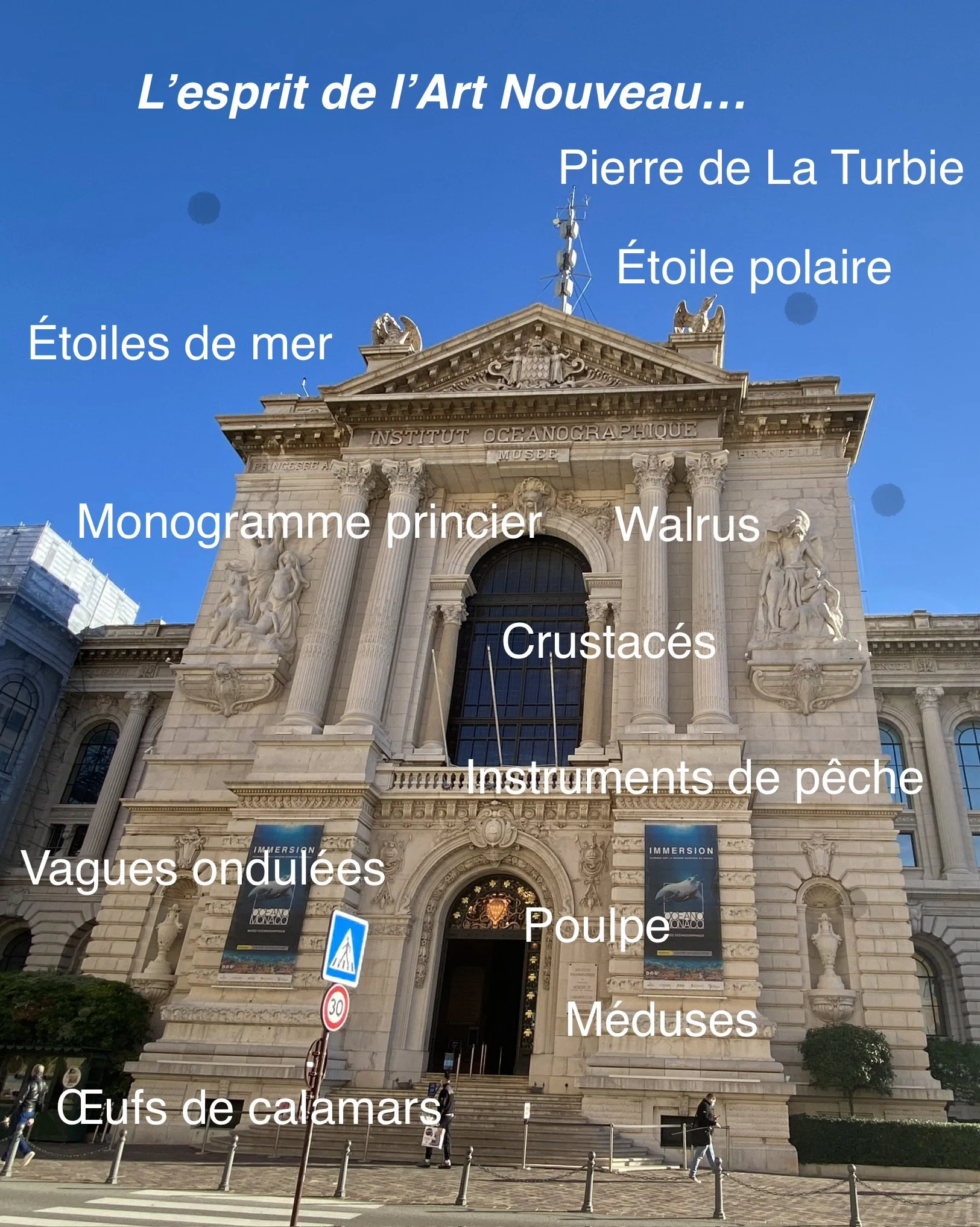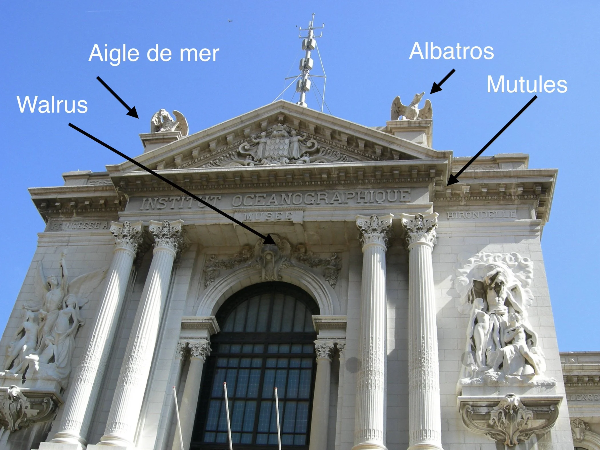 Enfin, sur le parvis du Musée Océanographique, tant de détails intéressants que la majorité des touristes, toujours pressés, rivés sur leur téléphone, ne voit pas. Et pourtant,….