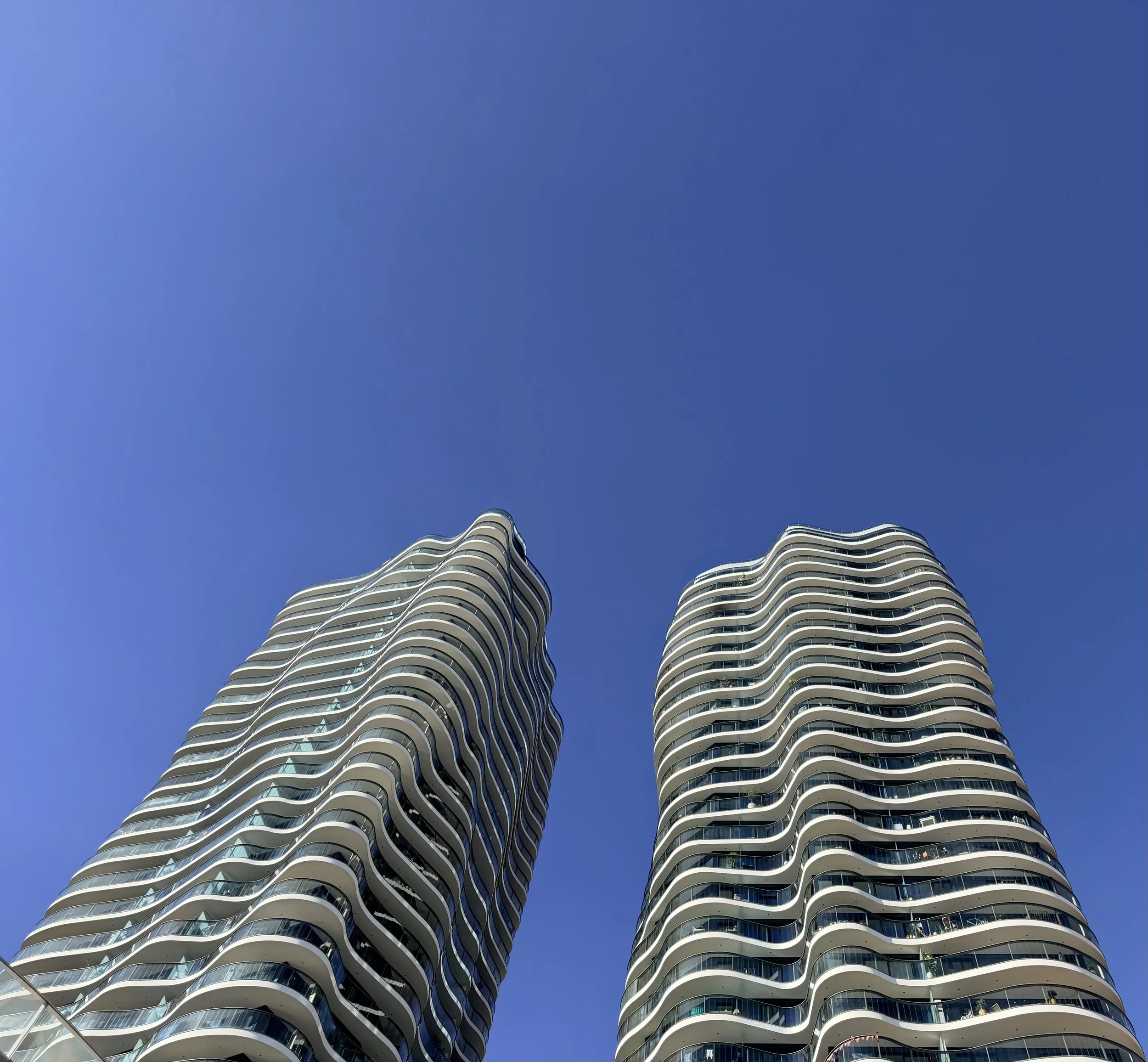Toutes en ondulations douces, les deux tours Réséda et Elsa du complexe Testimonio II.