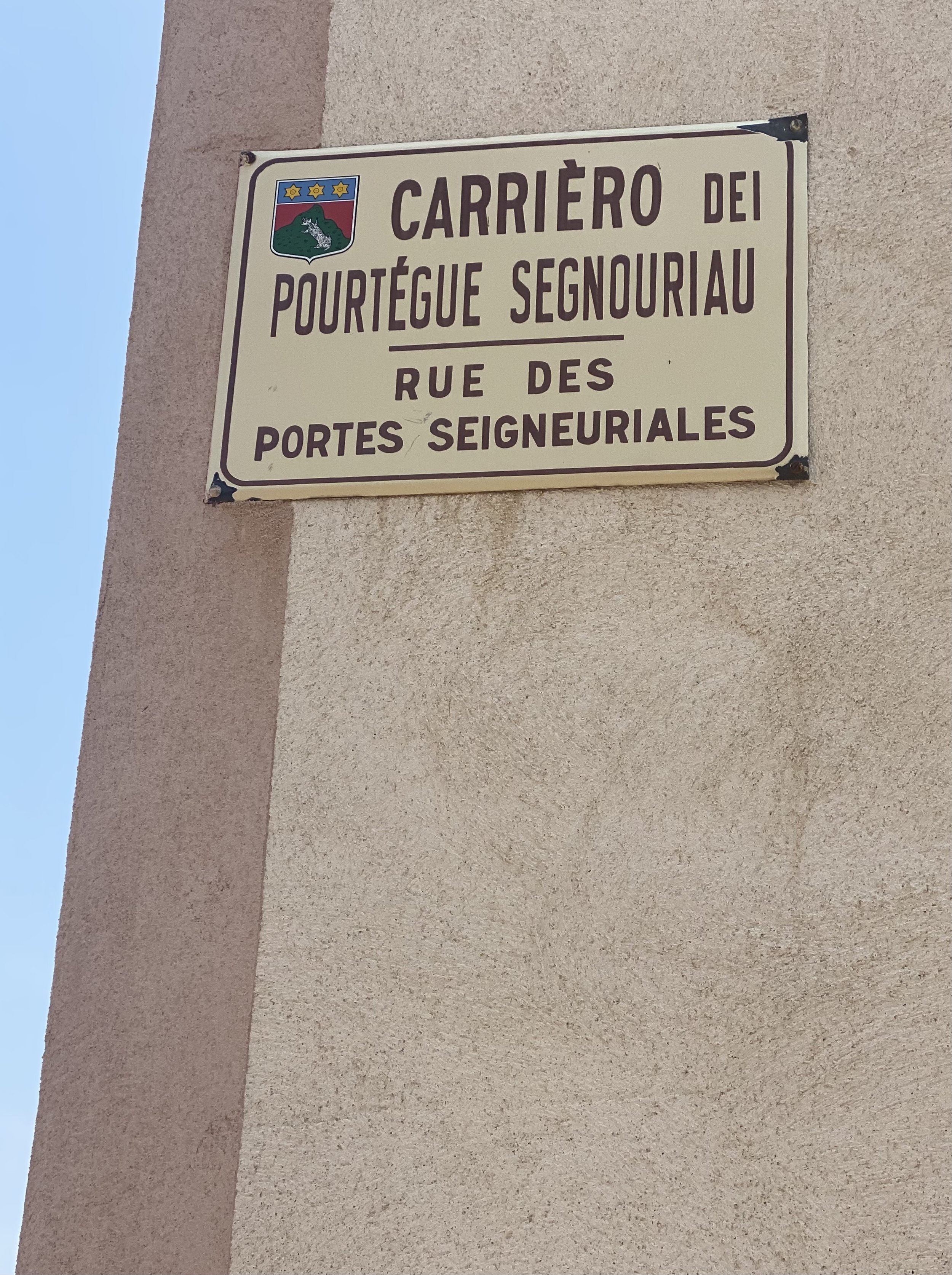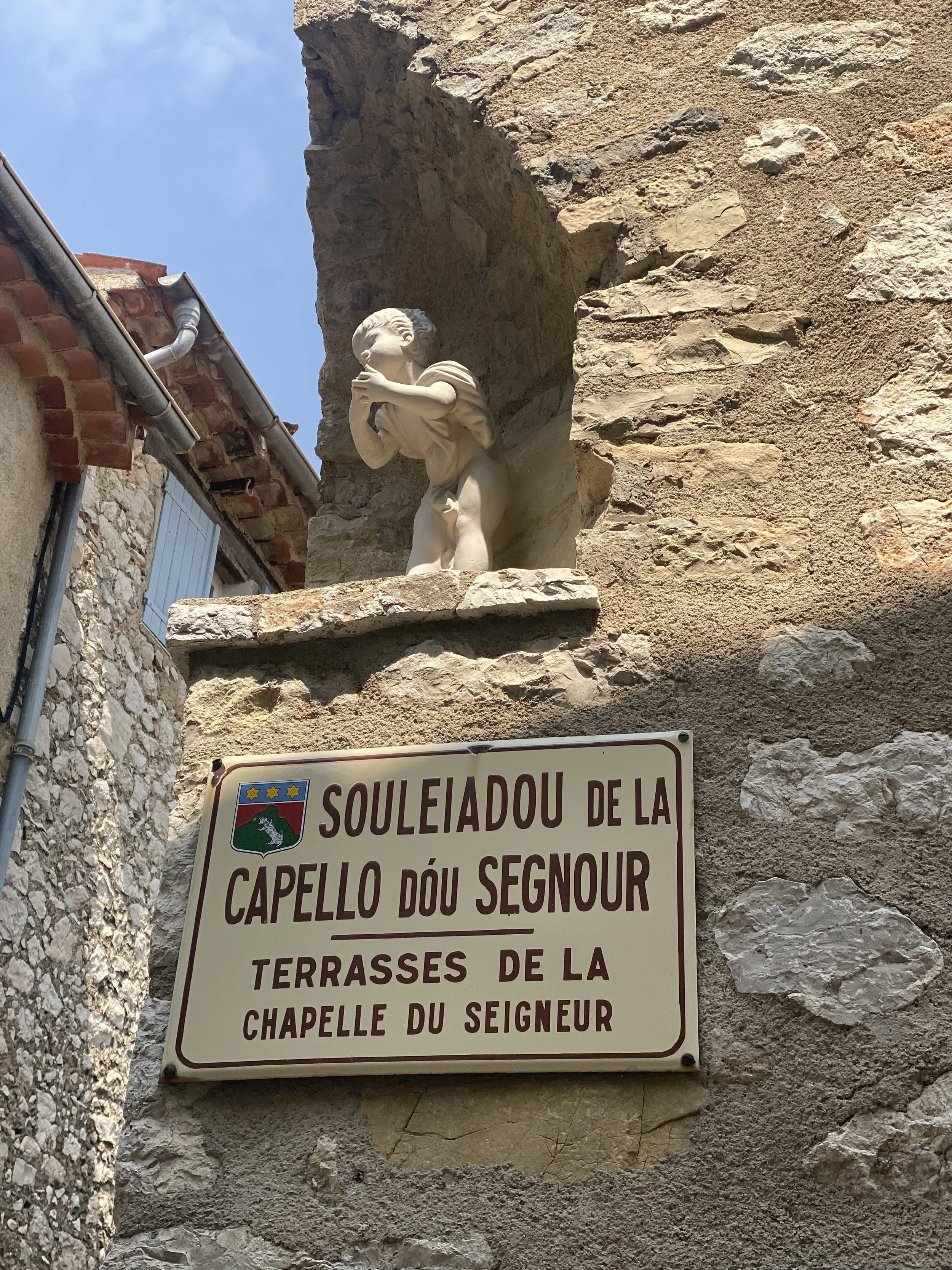 Ce village est attaché aux traditions provençales, et toutes les rues portent un nom en français et un nom en provençal : on est à Mouns-en-Prouvenço…