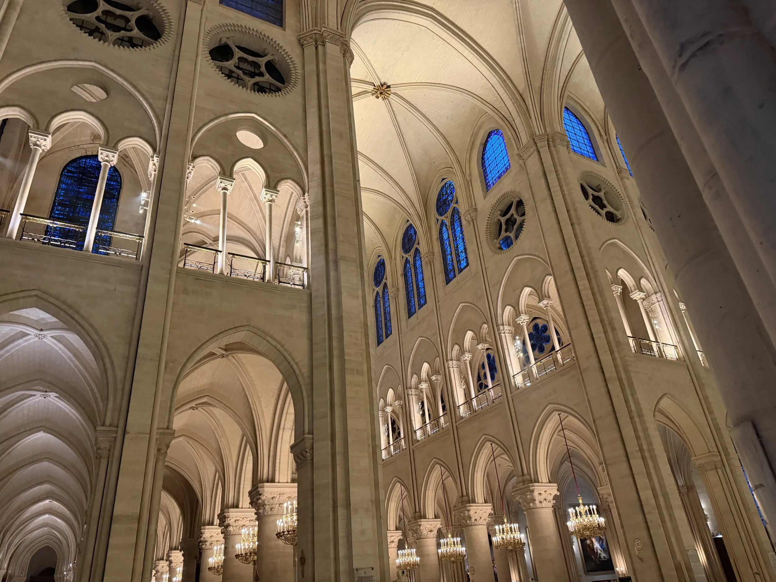 Tant de détails à observer dans cette magnifique cathédrale, dont le mur de clôture du chœur (14ème s.) riche en scultpures, ou les armes du Pape Léon XIV… On pense au 2 décembre 1804, lorsque Napoléon se couronne lui-même en présence du Pape Pie VII.
