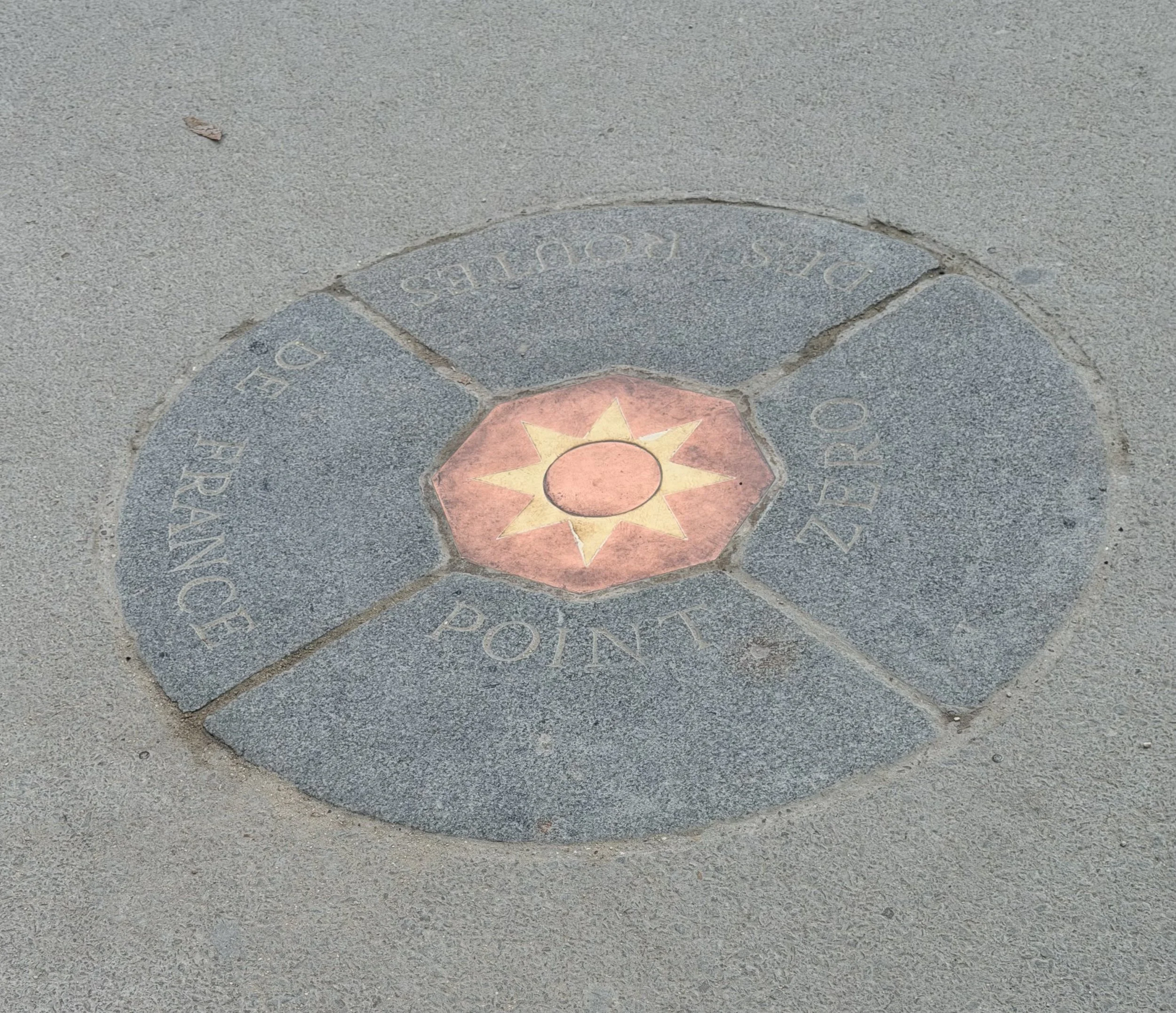 Beaucoup de visiteurs ne le voient pas, sur le parvis de la cathédrale : le point zéro des routes de France, depuis Louis XV…. la rose des vents en métal date des années 1920. Elle avait été retirée après l’incendie, en mauvais état, et c’est une nouvelle étoile qui a été mise en place en juillet 2025. 14 routes nationales commencent ici. Si on y pose le pied, on est assuré de revenir à Paris !