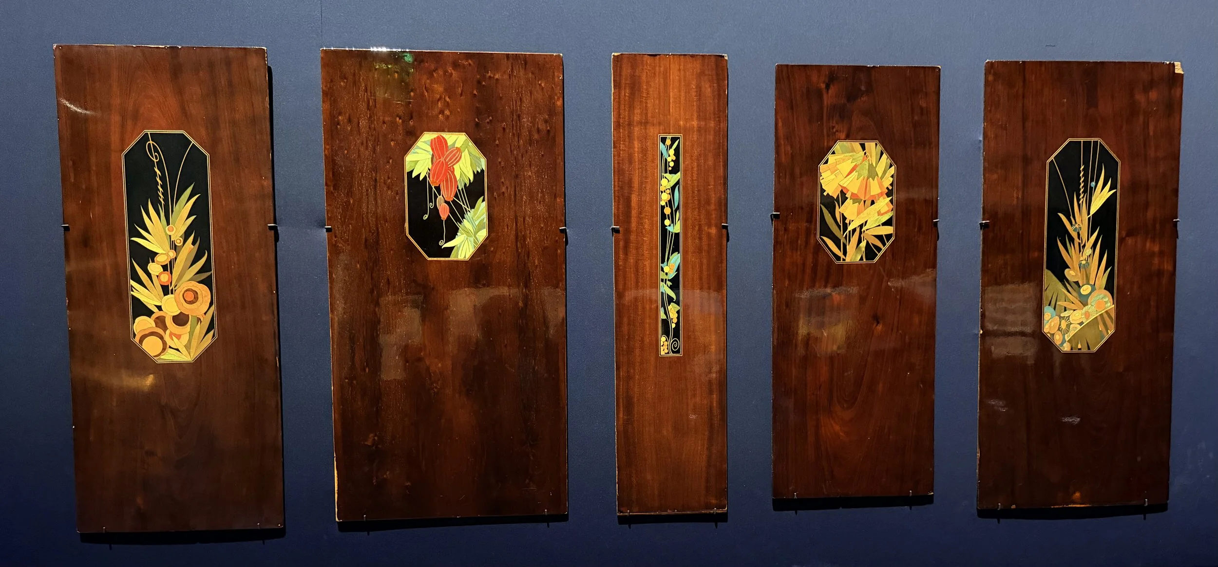 En 1928, René Lalique avait créé des panneaux décoratifs en verre pressé-moulé sur feuille d’argent pour les voitures-salon du train Côte d’Azur Pullman (le Train Bleu qui reliait Paris à Vintimille), représentant des merles et des raisins, dessinés par sa fille Suzanne. Ces panneaux récupérés dans les anciennes voitures ornent des niches dans les compartiments voyageurs.