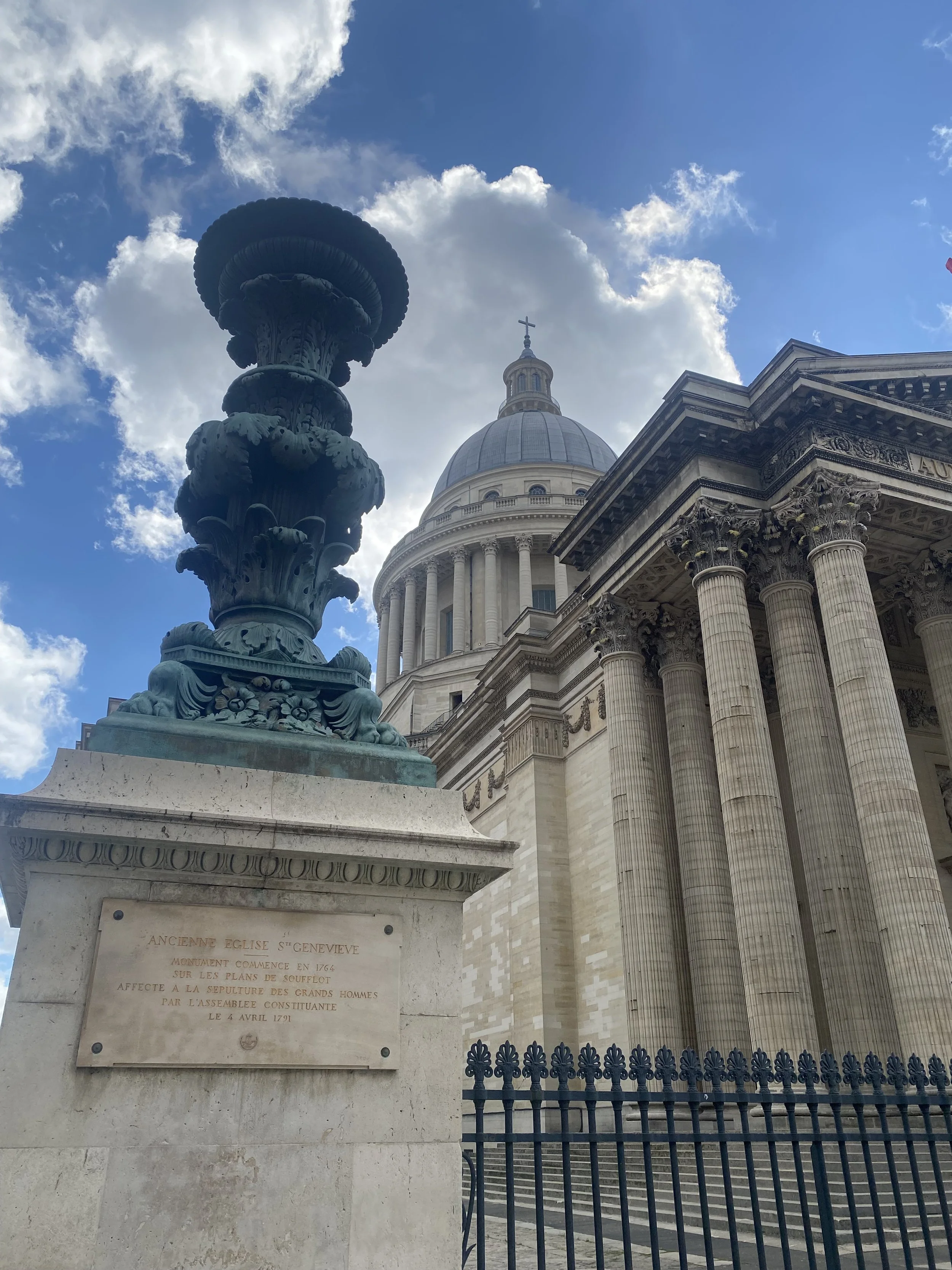Le Panthéon de Paris… à l’origine, un panthéon, c’est un temple dans la Grèce antique ou dans la Rome antique, consacré à plusieurs dieux, comme celui de Rome, dédié à tous les dieux, d’où le nom. L’architectue de celui de Paris s’inspire du Panthéon de Rome.