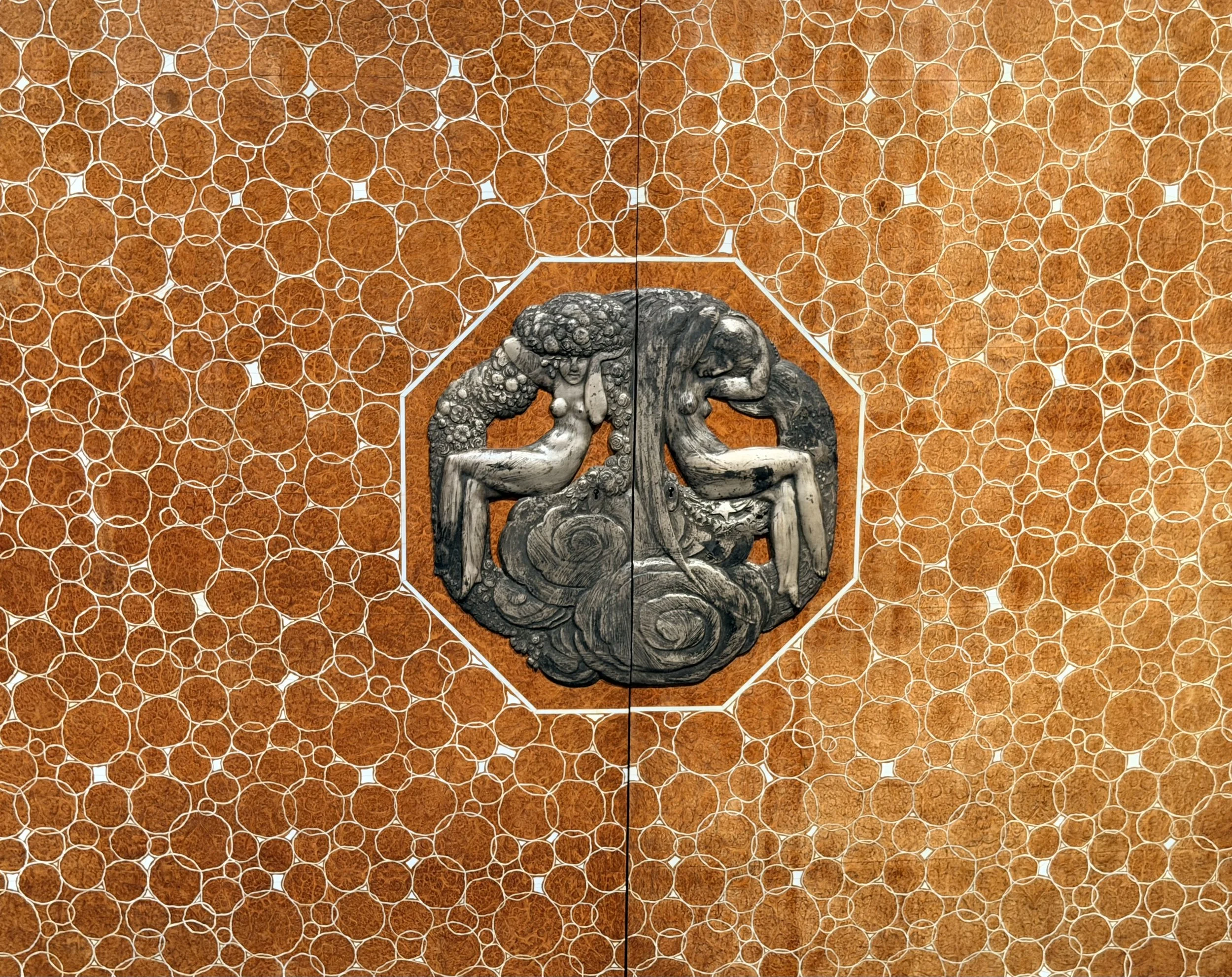 Détail des incrustations en ivoire sur le bureau Ambassadeur.