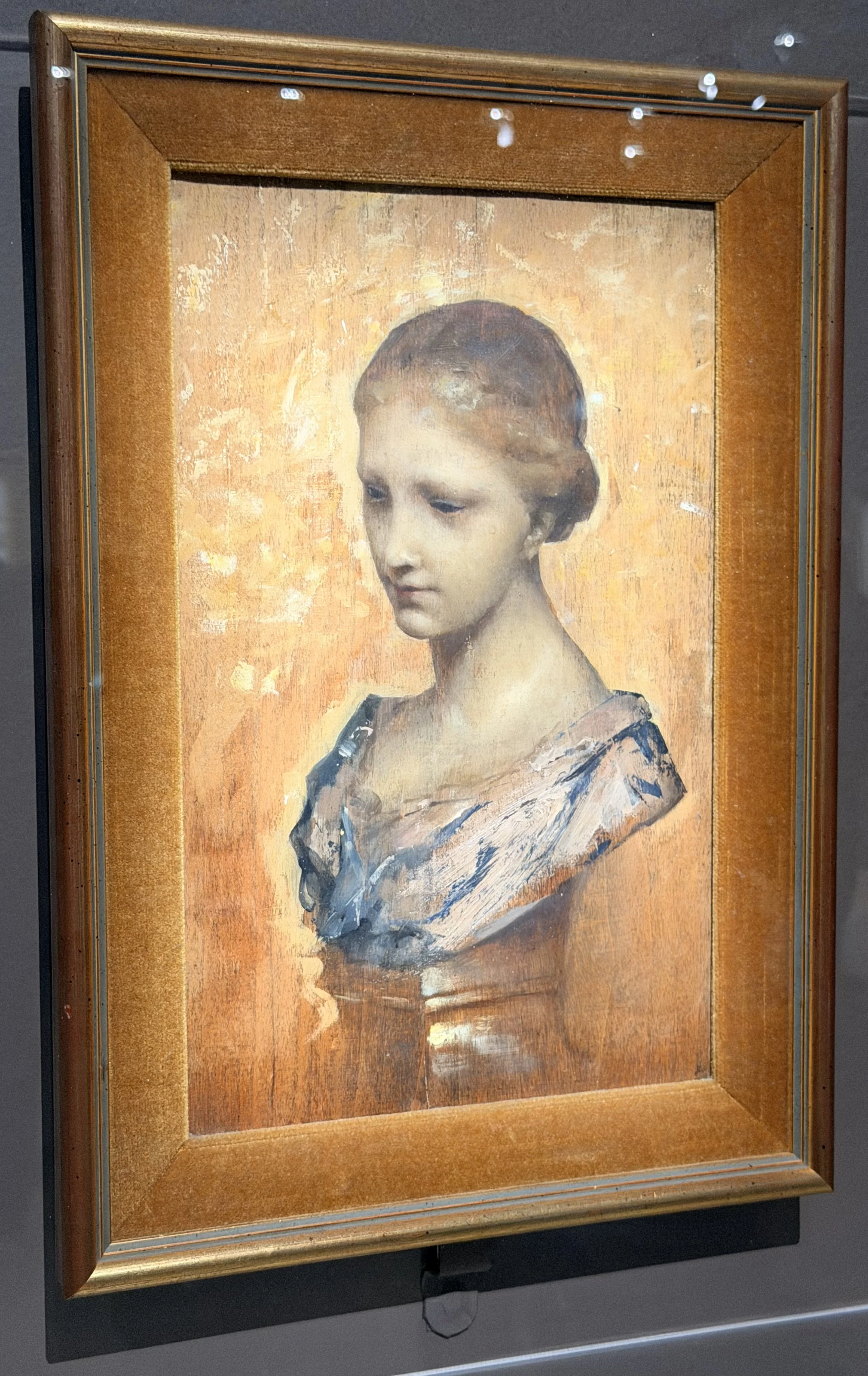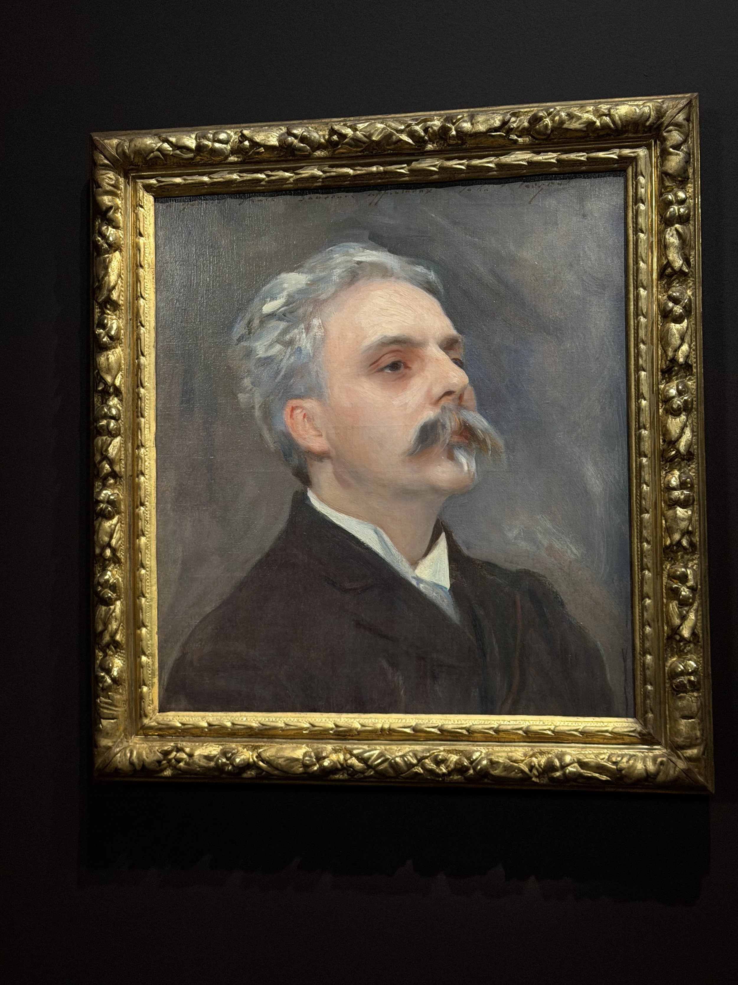 Un de mes préférés à l’exposition : le musicien Gabriel Fauré (vers 1889), offert à l’intéressé par le peintre, également musicien. Ils s’étaient rencontrés dans le cercle parisien autour de la riche Américaine Winnaretta Singer, héritière d’Isaac Singer (les machines à coudre !), future Princesse Edmond de Polignac, au début des années 1880. Sargent est venu à Paris à l’occasion de l’Exposition Universelle de 1889, et ce portrait a vraisemblablement été réalisé à Paris. Philharmonie de Paris, Musée de la Musique, Paris.