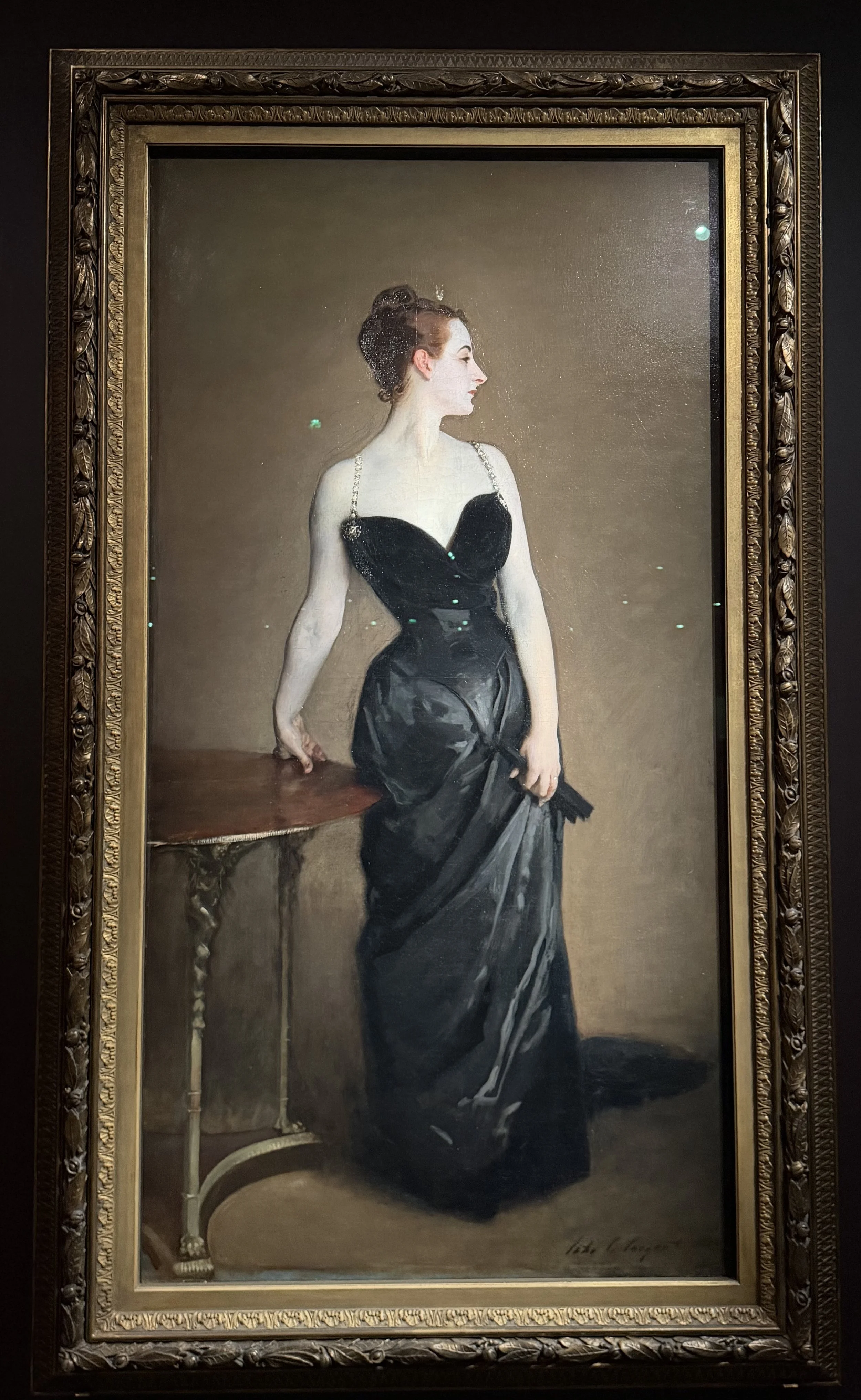 Le portrait de Madame X est un peu la Joconde du Metropolitan Museum of Art de New York. Présenté au Salon Officiel (Palais de l’Industrie, Champs-Élysées), le tableau fit scandale ! Très critiqué, notamment pour le teint lavande de la peau (qualifiée de cadavérique par certains) de Virginie Gautreau, d’une beauté atypique, fardée à l’extrême, figure de la haute société parisienne, ayant épousé un banquier, et Américaine de la Nouvelle-Orléans. Le modèle a 25 ans. Le peintre en a 28.