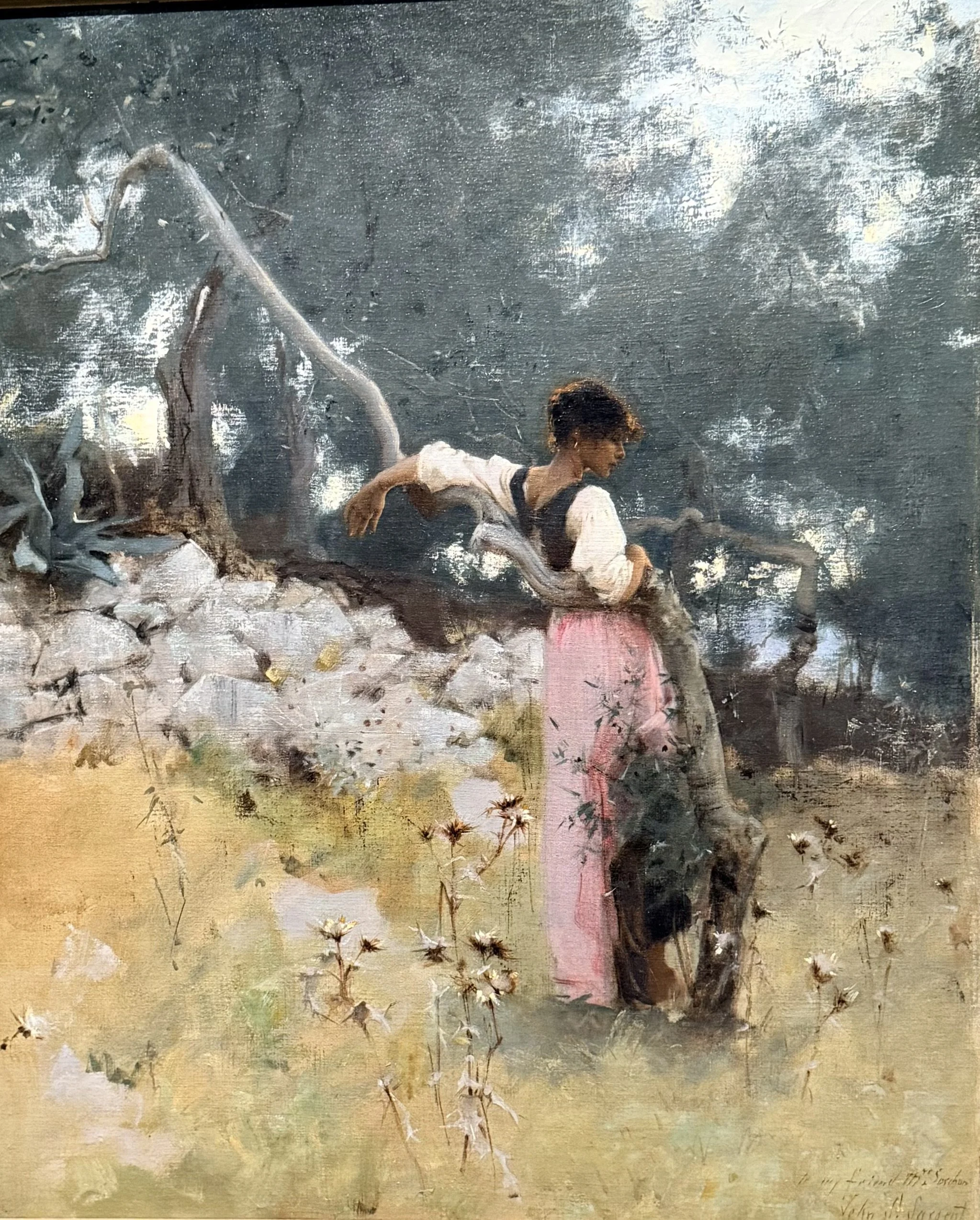 Dans les oliviers à Capri (1878) : Rosina Ferrara, modèle sur l’île, est adossée à un olivier. Cet été-là, il a séjourné à Naples, et à Capri. Collection particulière.