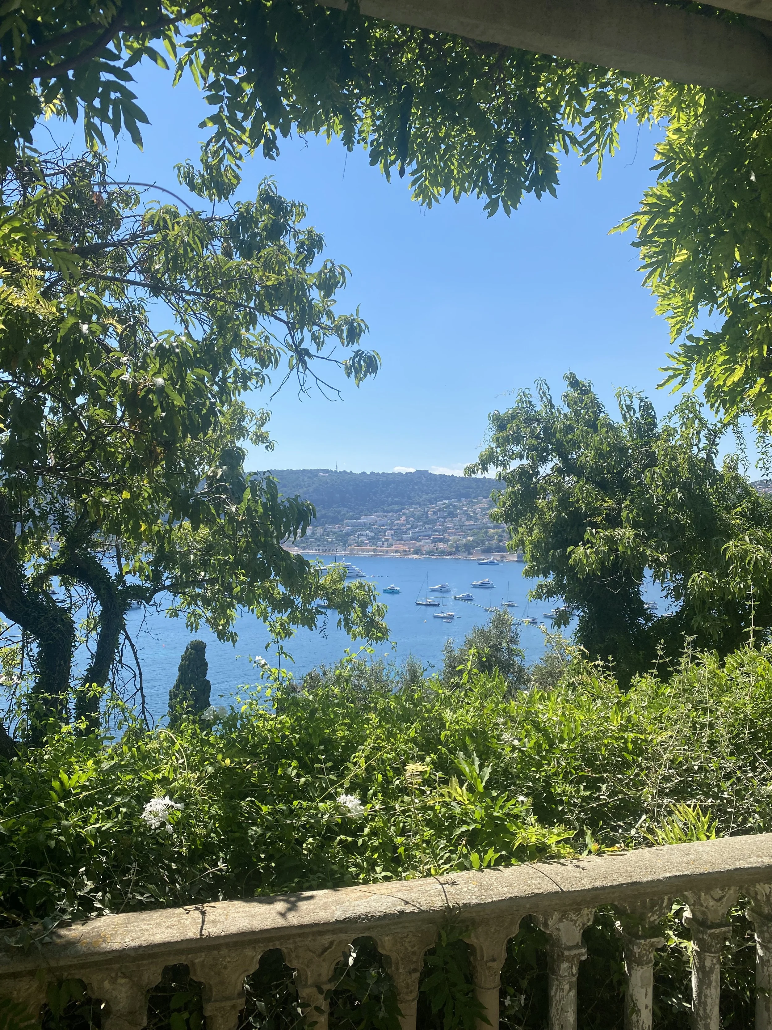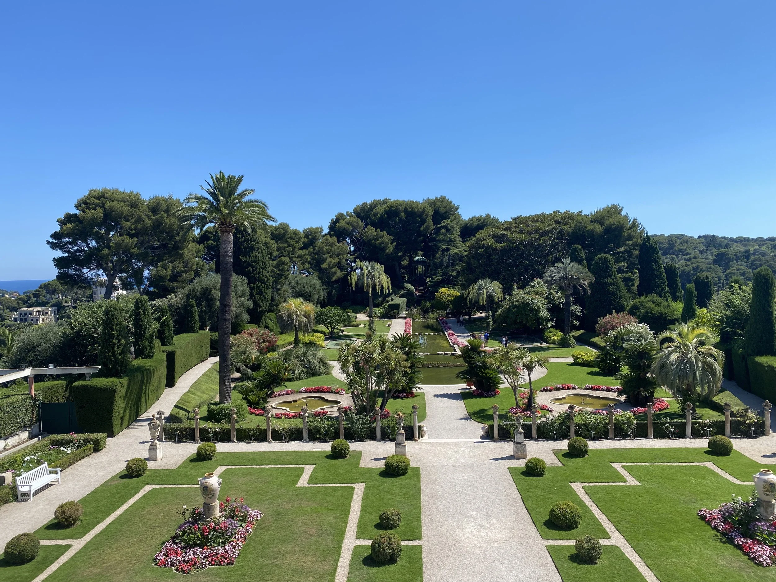Les différents jardins de la Villa Rothschild donnent sur les villas du Cap Ferrat et la Baie de Villefranche côté ouest © P. Borsarelli.
