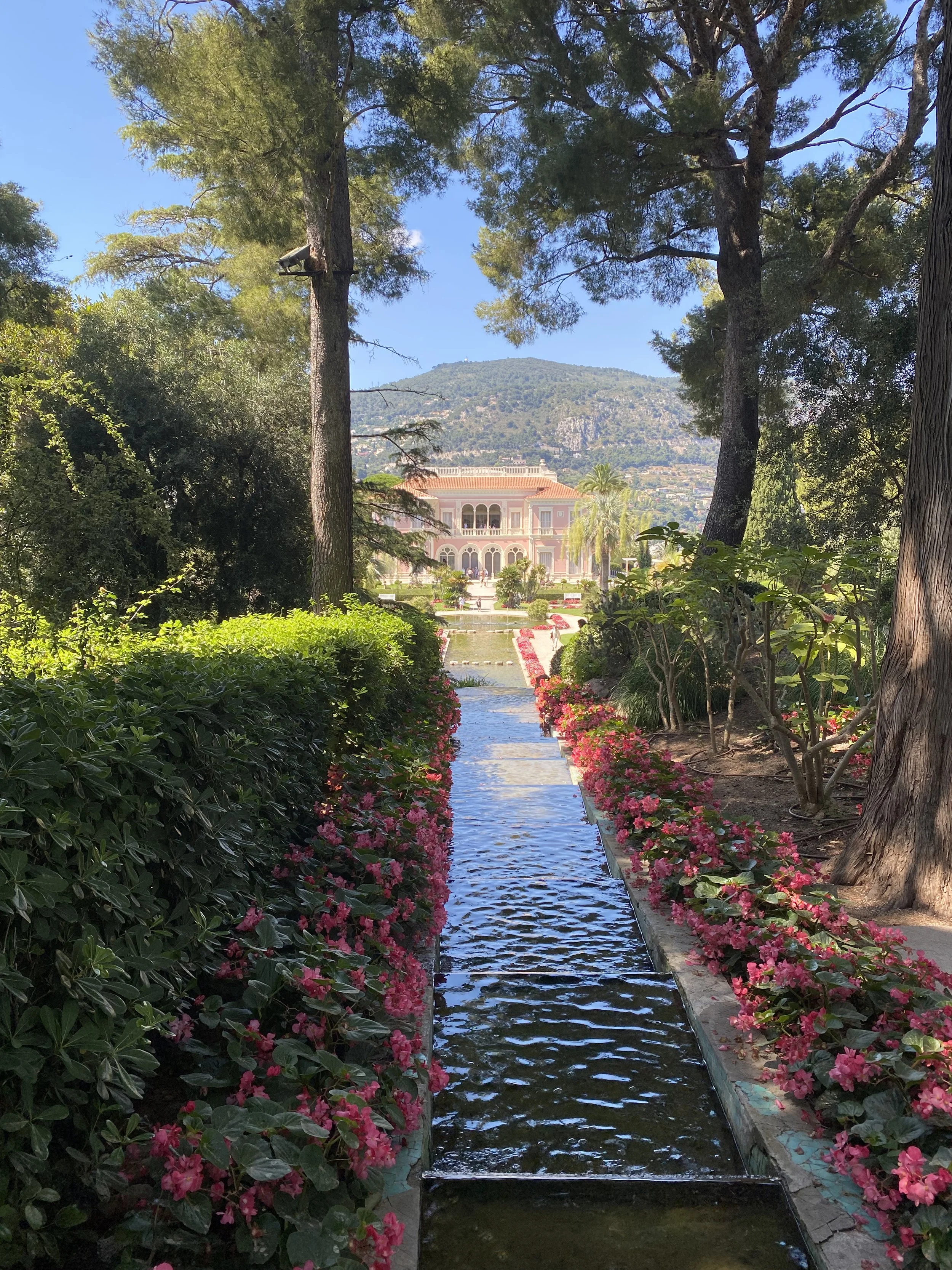 Tout autour de la villa rose, on se promène dans plusieurs jardins à thème : outre le jardin à la française et son bassin, le jardin espagnol, le jardin florentin, le jardin lapidaire, le jardin japonais, le jardin exotique, le jardin provençal et la roseraie © P. Borsarelli