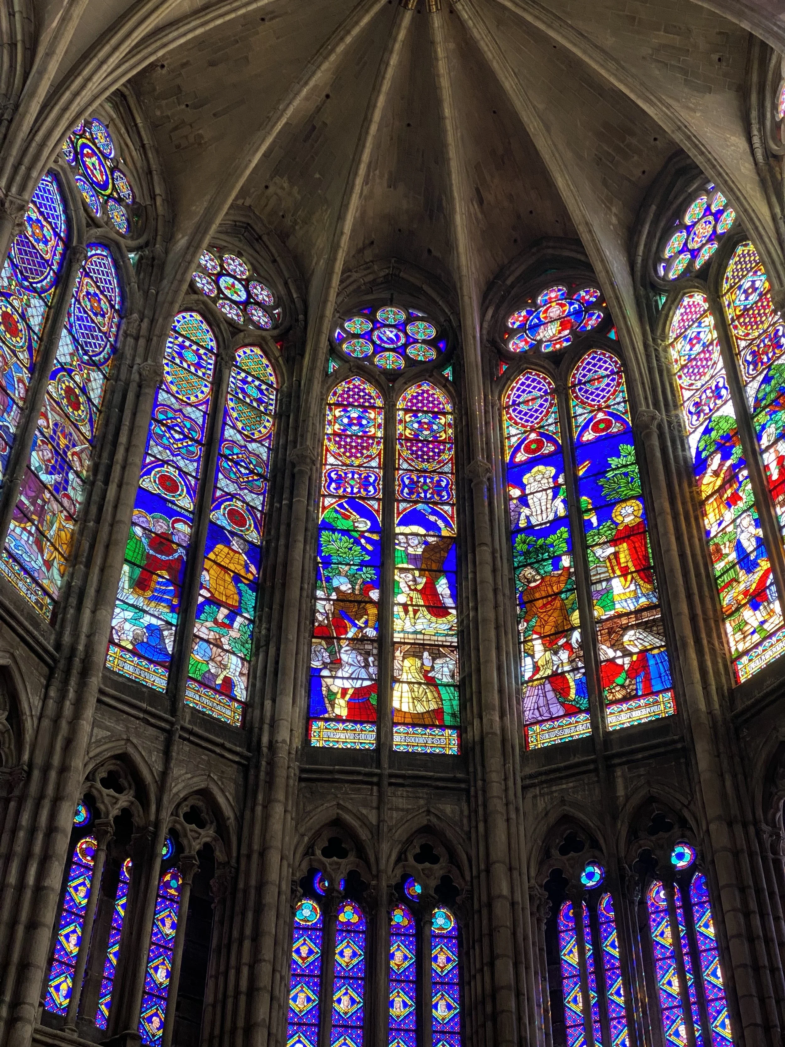 Les vitraux du déambulatoire ont été restaurés en 2022-2023. Pour la plupart, ce sont des créations commandées par les architectes du 19ème siècle qui ont restauré les lieux, car les Révolutionnaires avaient fait fondre les verrières afin d’en récupérer le plomb. On y raconte la légende de Saint-Denis et l’histoire de la basilique. Un véritable écrin de lumière…