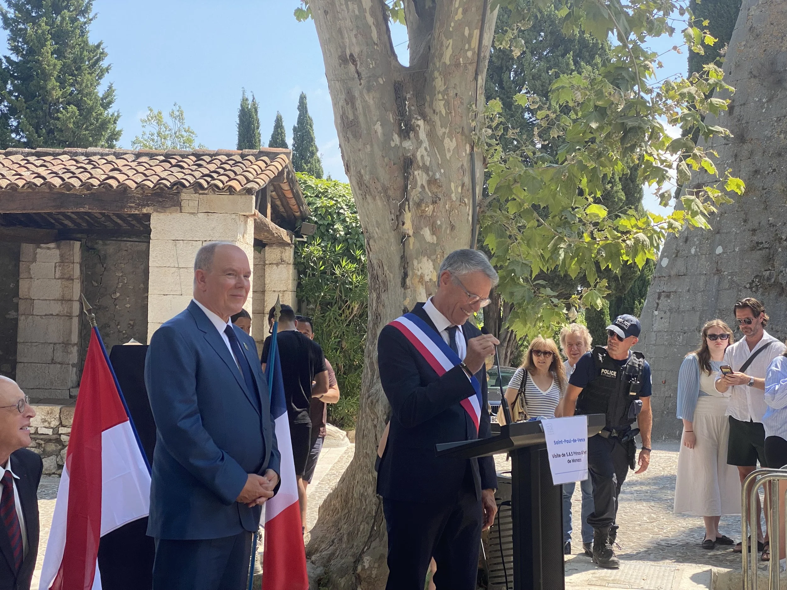 Son fils, le Prince Albert II, est venu inaugurer un parcours original dans les murs de la cité, en compagnie de M. Jean-Pierre Camilla, Maire de Saint-Paul-de-Vence, le mardi 15 juillet 2025. L’inauguration, qui était prévue le 9 mai, avait due être reportée. Le Prince et le Maire ont dévoilé la plaque Site Historique Grimaldi de Monaco. Au 18ème siècle, Saint-Paul fut gouverné par deux membres de la famille Grimaldi…